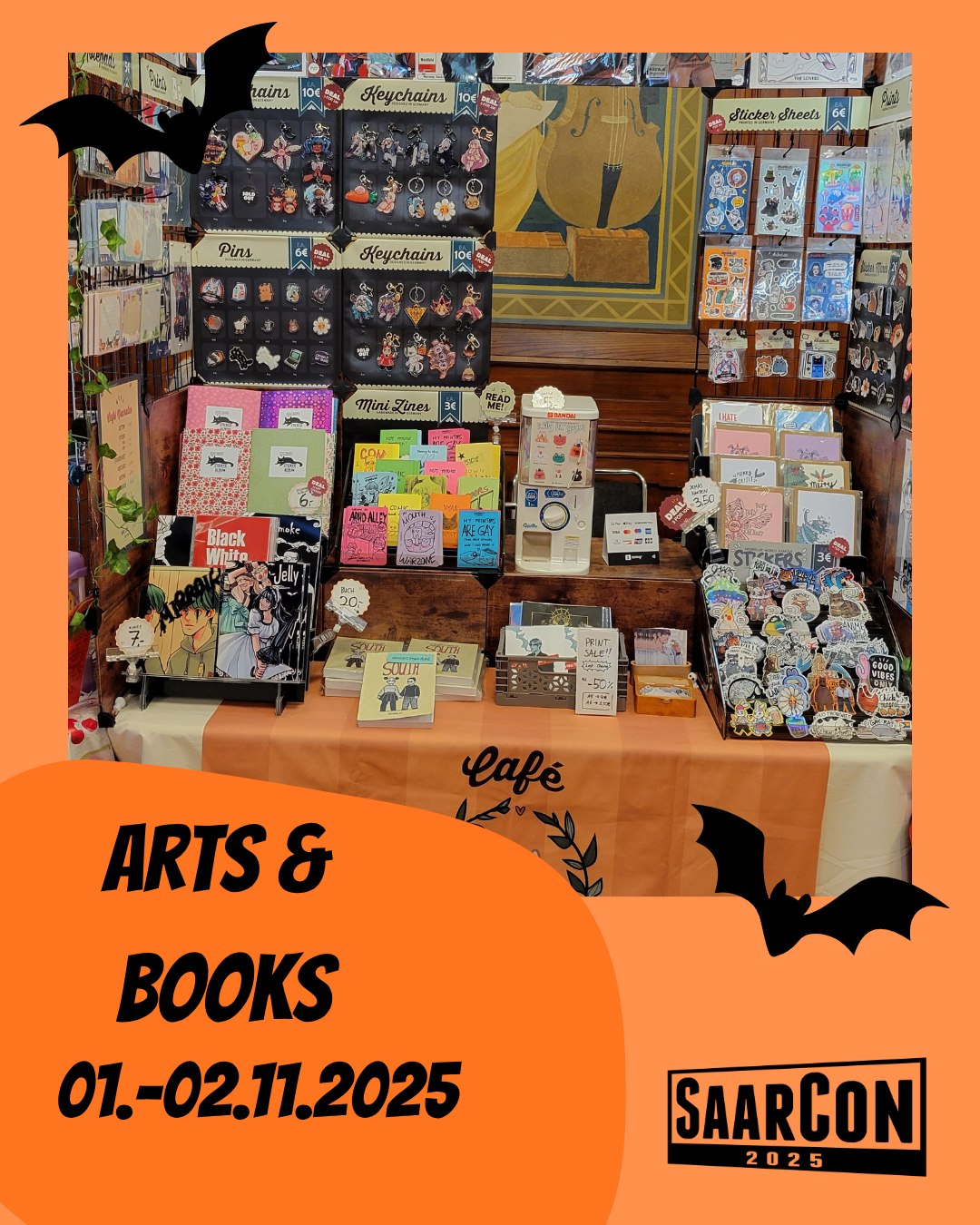 In diesem Jahr können wir @victoria_kii _kii in unserem Arts & Books Bereich begrüßen!Hi! Mein Name ist Victoria Kii und ich biete euch viele tolle Sachen an, die ich mit Liebe für euch erstellt habe. Ich biete sowohl OC Artworks als auch Fanarts in allen möglichen Formen an. Mein Sortiment besteht aus Keychains, Pins, Lesezeichen, Prints, Sticker, Postcards, Notepads, Charms und noch weiteren, es wird also bestimmt etwas für euch dabei sein.#saarcon #saarcon2025 #saarland #saarbruecken #campusleben #unisaarland #artistalley #victoria_kii #Supportartists #localartists