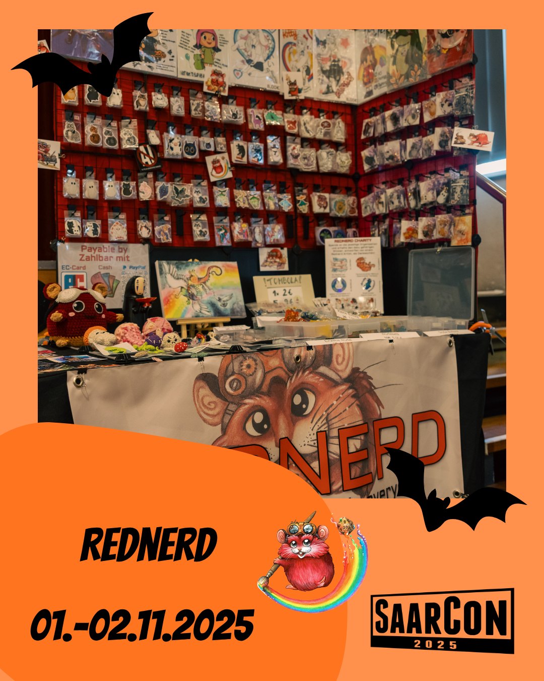 REDNERD – das Kreativ Kollektiv aus Zeichner:innen, Fotograf:innen und Cosplayer:innen!Angewachsen auf mittlerweile etwa 80 Teilnehmende, unterstützen sich die Rednerdsgegenseitig und tauschen sich über die Con-Szene aus. Zwar stammt der Großteil derteilnehmenden Personen aus dem Saarland und Umgebung, aber auch deutschlandweit undaus Luxemburg finden liebe Künstler:innen zum Kollektiv. ️Dieses Jahr fand außerdem zum zweiten Mal bereits die REDNERDCON inZusammenarbeit mit dem Eventveranstaltungsteam Next Heroes in Völklingen statt, bei demsich alles um nerdige Kunst dreht und die Rednerds sich stark einbringen, um das Event mitLeben zu füllen.Am Stand von @rednerdcon dcon trefft ihr auf den Gründer Dan und könnt unter anderemArtworks, Buttons, Sticker und einiges mehr von verschiedenen Artists aus dem Kollektiverwerben. Gerne freut er sich über ein Gespräch mit euch über die Kunst oder dieCon-Szene und gibt auch gerne Anfragen von euch an die Artists aus dem Kollektiv weiter#saarcon #saarcon2025 #saarland #saarbruecken #uds #unisaarland #artistalley #artsandbooks #rednerdnetzwerk #community #localartists #supportartists